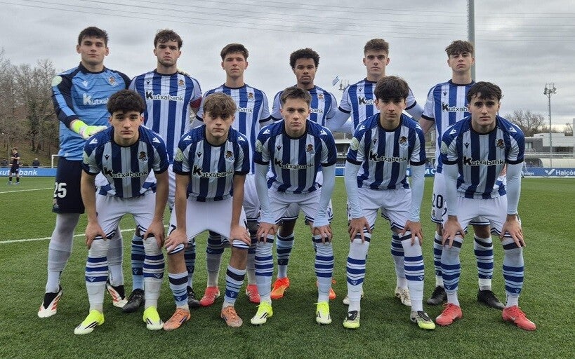 Arriba : Javi Jiménez, Anartz Segurola, Jakes Gorosabel, Samuyiwa, Unax Ayo y Oihan Froilán.